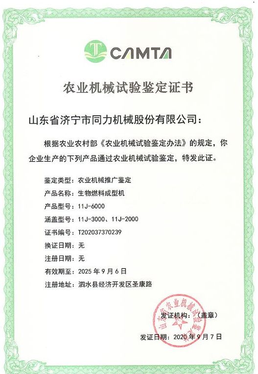 大江平台_大江(中国)一站式服务平台获得山东省农业机械试验鉴定证书